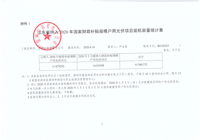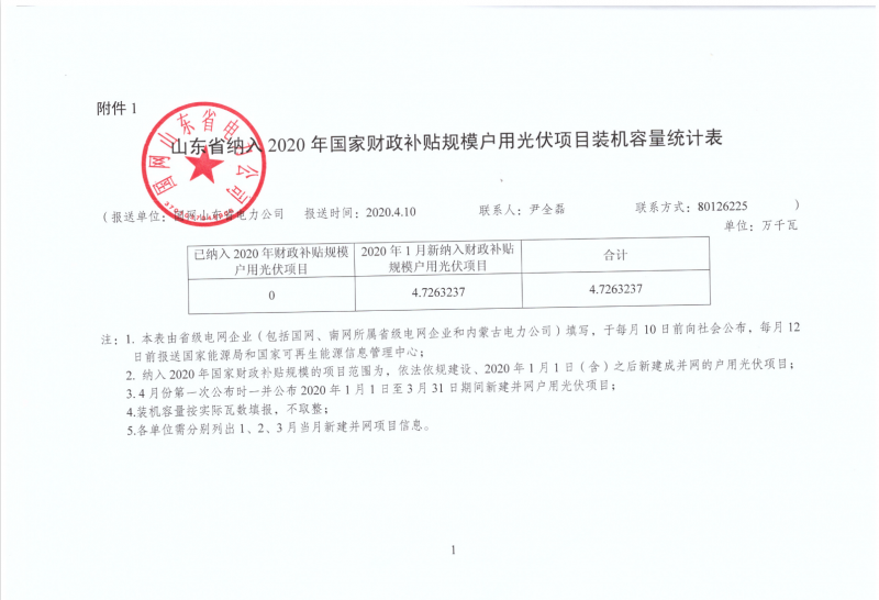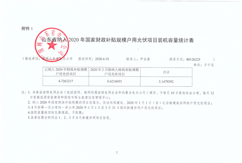 在發(fā)布《山東省納入2020年國家財政補貼規(guī)模戶用光伏項目裝機容量統(tǒng)計表》時,電力公司明確,納入2020年國家財政補貼規(guī)模的項目范圍為,依法依規(guī)建設(shè)、2020年1月1日(含)之后新建成并網(wǎng)的戶用光伏項目。