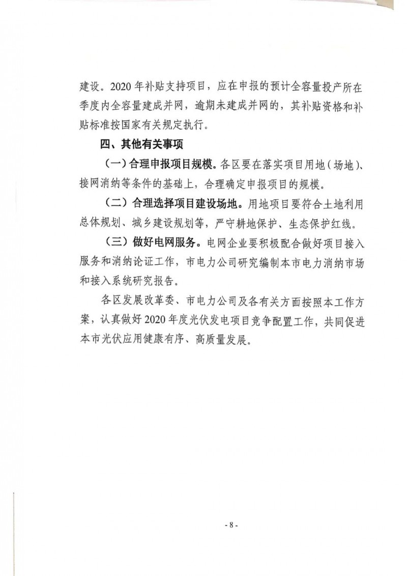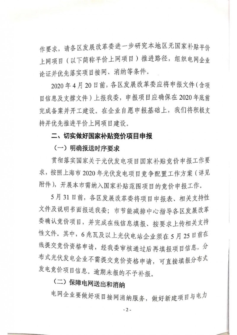 上海市所有需要國家補(bǔ)貼的2020年度新建普通光伏電站、工商業(yè)分布式光伏發(fā)電項(xiàng)目以及國家組織實(shí)施的專項(xiàng)工程、示范項(xiàng)目,包括2020年1月1日以來已建成并網(wǎng)的項(xiàng)目和計(jì)劃于2020年12月31日之前全容量并網(wǎng)的項(xiàng)目均可以參與競價(jià)。