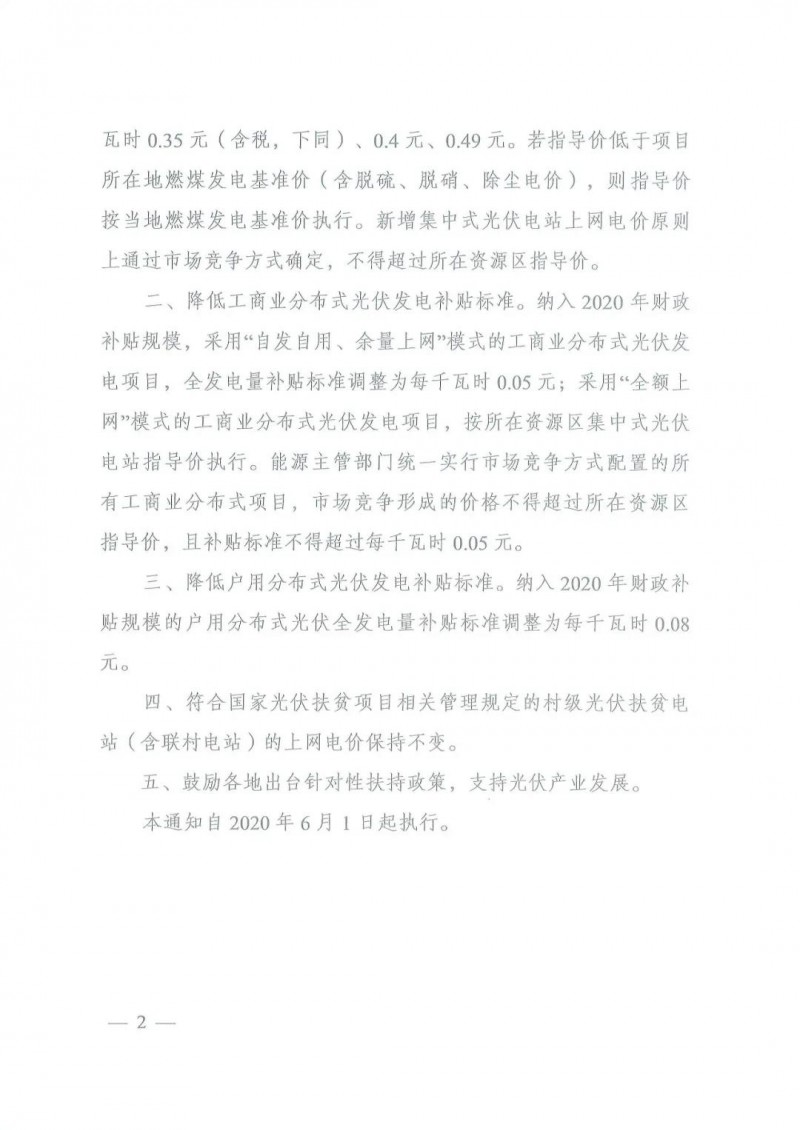 紅頭文件 | 2020年光伏補貼政策