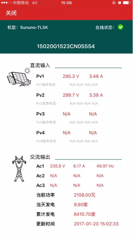 可監(jiān)測組串運行的實時電壓、電流。快速判斷組串是否運行正常,實現(xiàn)高效運維。
