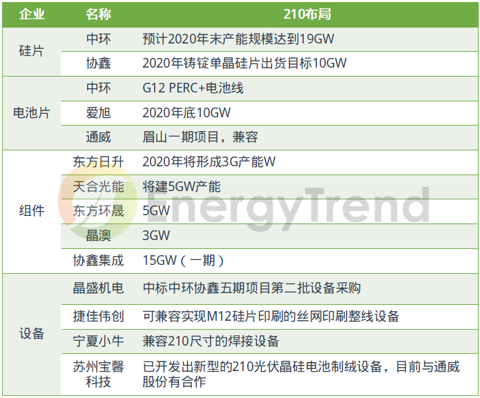 。預(yù)期2020年底將有10GW的210電池產(chǎn)能。