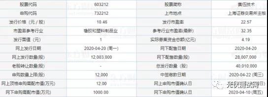 2020年4月20日,賽伍在上海證券交易所申購,確定上市。