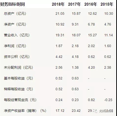 賽伍財務(wù)狀況良好,2015-2018年營收和凈利潤均呈現(xiàn)持續(xù)增長。2018年,賽伍總資產(chǎn)21億元,營業(yè)收入近20億元,凈利潤近2億元。