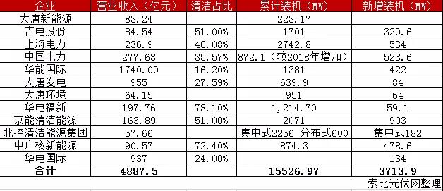 2020年作為“十三五”的收官之年,也是電力集團(tuán)實(shí)現(xiàn)清潔能源轉(zhuǎn)型的關(guān)鍵之年,在實(shí)現(xiàn)清潔能源轉(zhuǎn)型上,各大央企國(guó)企也瞄準(zhǔn)了光伏這一領(lǐng)域頻頻發(fā)力,索比光伏網(wǎng)整理了近期國(guó)企財(cái)報(bào)裝機(jī)數(shù)據(jù),僅12家(不完全統(tǒng)計(jì))“國(guó)家隊(duì)”企業(yè)新增裝機(jī)便達(dá)到了3.71GW,累計(jì)裝機(jī)15.52GW。企業(yè)裝機(jī)清潔占比逐步提高。