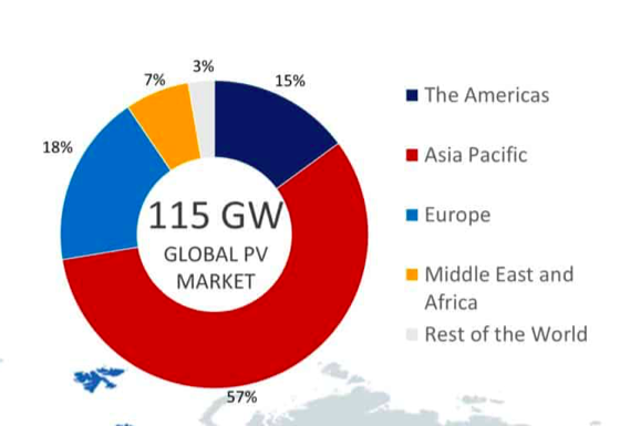 中國市場以外,全球光伏市場從2018年的58.8GW增長至2019年的84.9GW,同比增長44%。