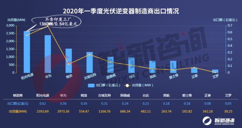 圖1:2020年一季度光伏逆變器制造商出口情況