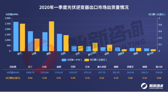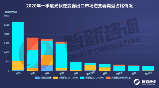 圖2:2020年一季度光伏逆變器出口市場(chǎng)出貨量情況