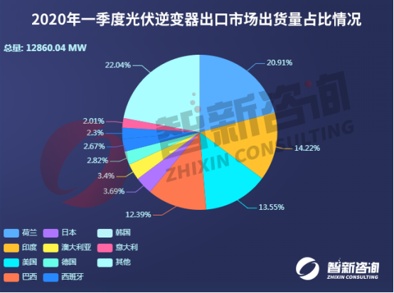 圖3:2020年一季度光伏逆變器出口市場(chǎng)出貨量占比情況