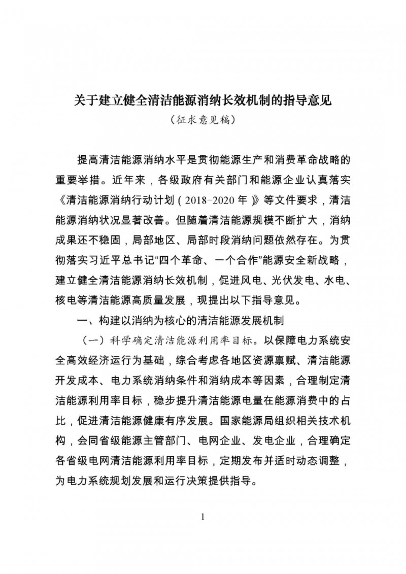 國(guó)家能源局綜合司關(guān)于公開(kāi)征求《關(guān)于建立健全清潔能源消納長(zhǎng)效機(jī)制的指導(dǎo)意見(jiàn)(征求意見(jiàn)稿)》意見(jiàn)的公告