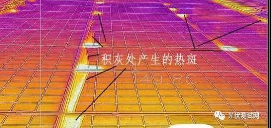 提到組件熱斑,不能忽視的是由于組件下沿泥帶遮擋入射光使該區(qū)域的電流明顯小于其他非泥帶區(qū)域電流而引起的泥帶區(qū)域熱斑效應(yīng),積灰處產(chǎn)生的熱斑是造成光伏組件發(fā)電量減少的一大重要因素。