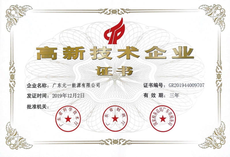 高新技術(shù)企業(yè)是科技創(chuàng)新的重要載體,是發(fā)展高新技術(shù)產(chǎn)業(yè)和戰(zhàn)略性新興產(chǎn)業(yè)的骨干力量。成功獲得高新技術(shù)企業(yè)認定,充分說明了國家相關(guān)部門對元一能源工作成果的肯定,同時也代表著元一能源在技術(shù)創(chuàng)新、知識產(chǎn)權(quán)、研發(fā)能力及企業(yè)成長性等方面得到官方認可,是公司發(fā)展的一個重要里程碑。