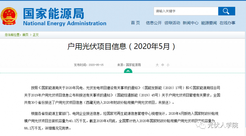 3月6日,國(guó)家能源局發(fā)布了關(guān)于2020年風(fēng)電、光伏發(fā)電項(xiàng)目建設(shè)有關(guān)事項(xiàng)的通知中提到,2020年度新建光伏發(fā)電項(xiàng)目補(bǔ)貼預(yù)算總額度為15億元。其中:5億元用于戶用光伏,補(bǔ)貼競(jìng)價(jià)項(xiàng)目(包括集中式光伏電站和工商業(yè)分布式光伏項(xiàng)目)按10億元補(bǔ)貼總額組織項(xiàng)目建設(shè)。