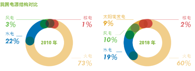 圖1 2010年和2018年我國電源結構對比情況