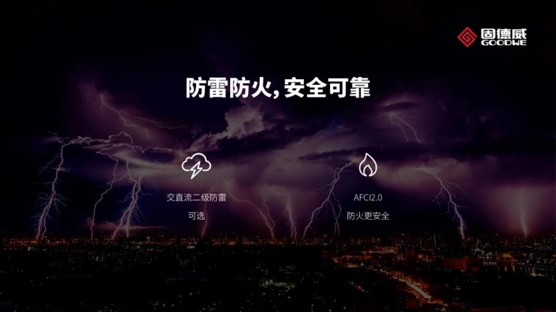 由于戶用光伏電站大多是安裝在家庭的屋頂上的,所以電站的安全變成了頭等大事,一但發(fā)生事故后果不堪設想。為保障客戶生命財產(chǎn)安全,固德威在設備安全方面做了頗多付出,現(xiàn)在已經(jīng)開發(fā)出AFCI2.0(直流拉弧檢測),25kW機型可以加裝選配,直流拉弧檢測不誤報、不漏報,幾乎100%保障直流側安全。另外,25kW機型在直流側和交流測都有防雷設置,杜絕雷擊隱患,防雷更安心。
