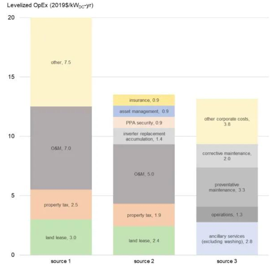 運(yùn)營(yíng)成本(OpEx)的下降是由于近年來運(yùn)營(yíng)和維護(hù)(O&M)成本的“急劇”下降,“在許多情況下,每年每千瓦時(shí)成本下降到5到8美元,”一份新聞稿中說。其他運(yùn)營(yíng)費(fèi)用還包括財(cái)產(chǎn)稅、土地租賃成本、證券、保險(xiǎn)和資產(chǎn)管理。