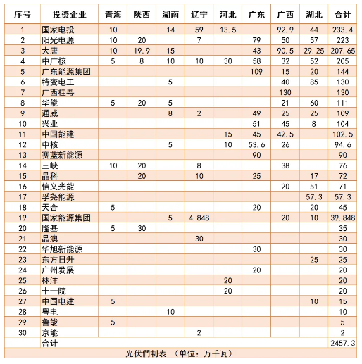 2020年部分企業(yè)競價光伏電站開發(fā)規(guī)模匯總