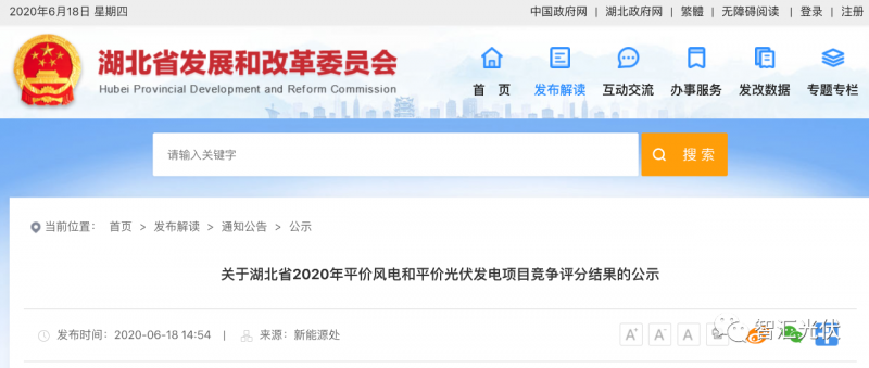 按照《國家能源局關(guān)于2020年風(fēng)電、光伏發(fā)電項(xiàng)目建設(shè)有關(guān)事項(xiàng)的通知》(國能發(fā)新能〔2020〕17號)要求,結(jié)合我省實(shí)際,我們組織市州申報了2020年平價風(fēng)電和平價光伏發(fā)電項(xiàng)目。近期,省能源局委托湖北省工程咨詢公司對市州申報的9個風(fēng)電項(xiàng)目(容量60.85萬千瓦)、74個光伏發(fā)電項(xiàng)目(容量592.946萬千瓦)進(jìn)行了綜合評定和排序,省紀(jì)委監(jiān)委駐省發(fā)改委紀(jì)檢監(jiān)察組、省發(fā)改委機(jī)關(guān)紀(jì)委和省能源局能源監(jiān)管處對競爭評分工作進(jìn)行了全程監(jiān)督。根據(jù)有關(guān)規(guī)定,現(xiàn)將評分結(jié)果在湖北省發(fā)改委門戶網(wǎng)站(fgw.hubei.gov.cn)進(jìn)行公示。 公示時間為2020年6月18日至6月22日。公示期間,項(xiàng)目單位如對評分結(jié)果有異議的,請書面(請列舉理由和相關(guān)證明材料,注明聯(lián)系人和聯(lián)系方式并加蓋單位公章)向省能源局提出申請,由省能源局責(zé)成委托的第三方機(jī)構(gòu)集中時間進(jìn)行復(fù)核,并在湖北省發(fā)改委門戶網(wǎng)站公布復(fù)核結(jié)果。受理時間截止2020年6月22日17時止。 聯(lián)系人及電話:省能源局新能源處肖光武,027-87235171省發(fā)改委機(jī)關(guān)紀(jì)委黃峰,027-87231292