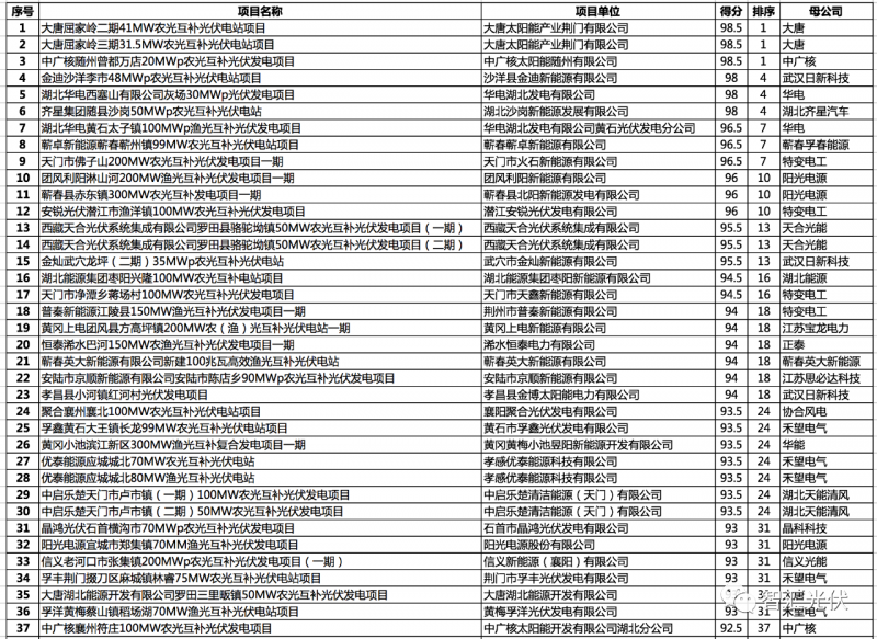 2.湖北省2020年平價光伏發(fā)電項(xiàng)目競爭評分排序表