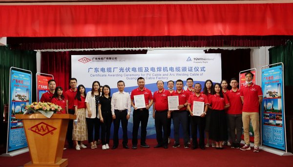 TUV萊茵為廣東電纜廠頒發(fā)TUV萊茵型式認證證書