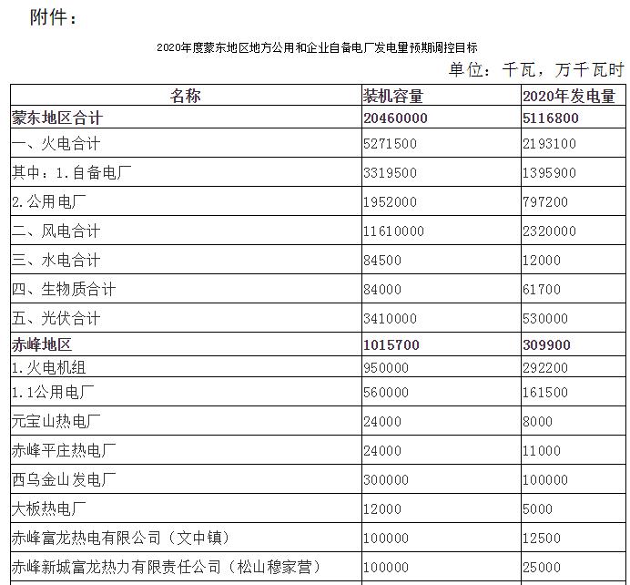 附件:2020年度蒙東地區(qū)地方公用和企業(yè)自備電廠發(fā)電量預(yù)期調(diào)控目標(biāo)