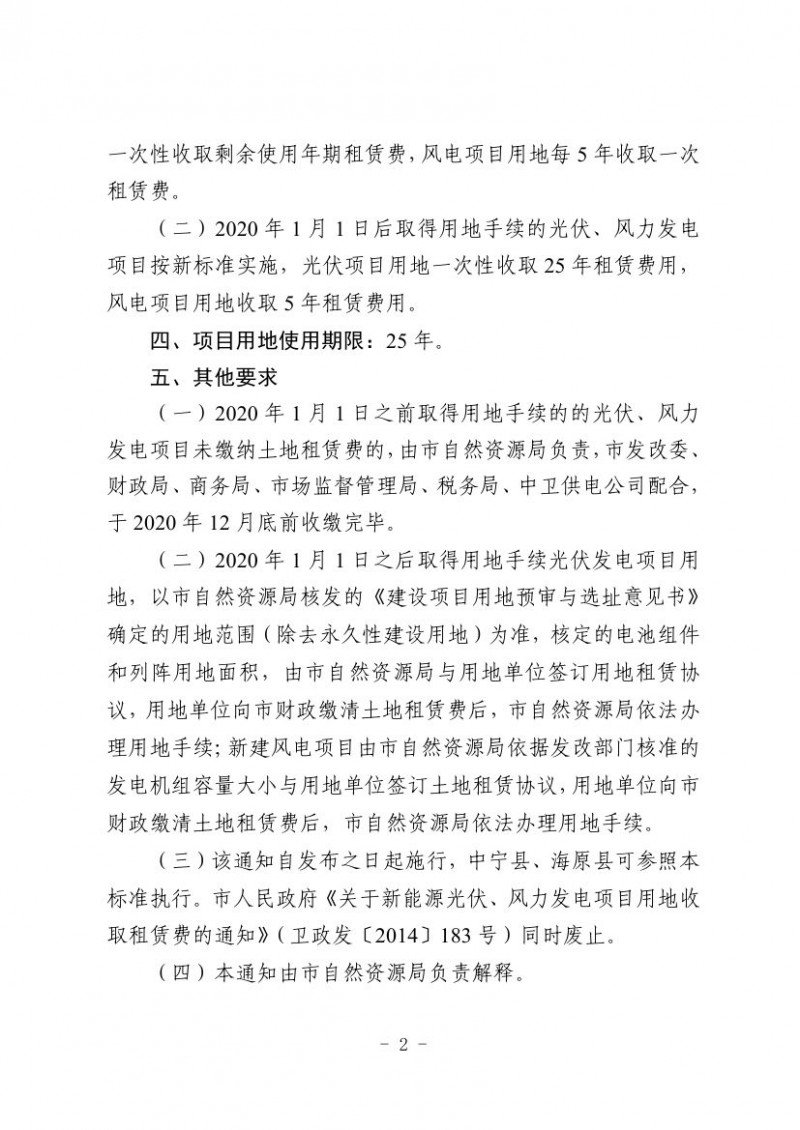 寧夏中衛(wèi)市關(guān)于向社會(huì)公眾征求《關(guān)于調(diào)整新能源光伏、風(fēng)力發(fā)電項(xiàng)目用地租賃費(fèi)收費(fèi)標(biāo)準(zhǔn)的通知》意見的公告