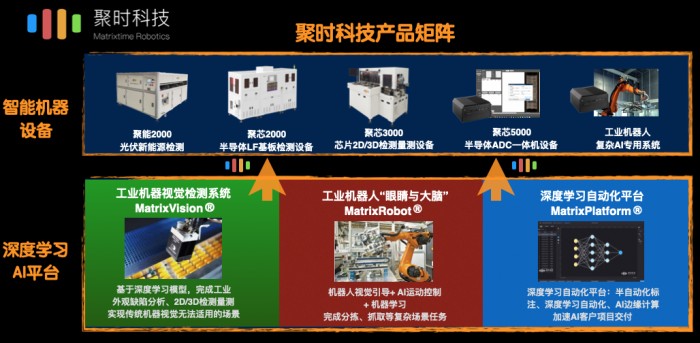 依靠強(qiáng)大的AI算法能力和軟件開(kāi)發(fā)能力,結(jié)合自研的精密機(jī)械控制與打光成像方案,聚時(shí)科技推出了半導(dǎo)體AI機(jī)器視覺(jué)方案MatrixSemi®?;贛atrixSemi®,聚時(shí)科技先后推出了聚芯2000半導(dǎo)體LF基板與引線框架AOI檢測(cè)設(shè)備、聚芯5000半導(dǎo)體晶圓級(jí)ADC分析檢測(cè)設(shè)備、聚芯3000通用芯片3D精密量測(cè)與檢測(cè)設(shè)備,應(yīng)用于半導(dǎo)體客戶前道與后道制程領(lǐng)域。同時(shí)結(jié)合已有客戶需求,公司正在加速攻堅(jiān)半導(dǎo)體晶圓級(jí)復(fù)雜視覺(jué)檢測(cè)設(shè)備。