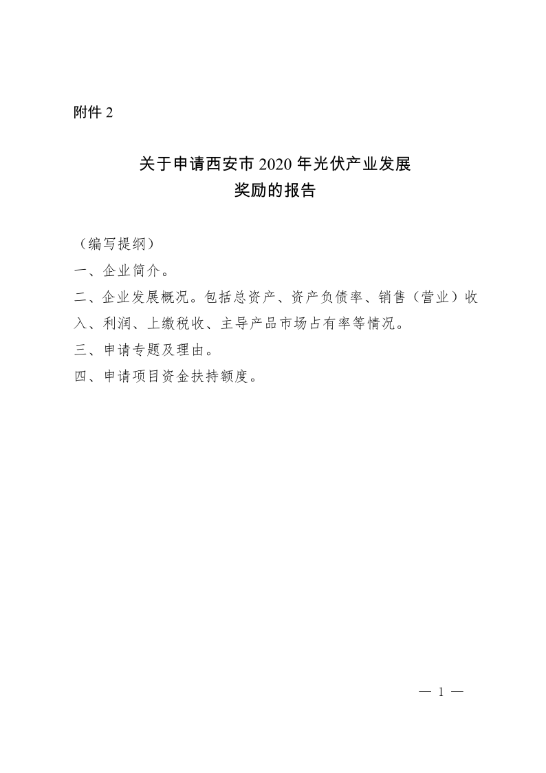 2.關(guān)于申請西安市2020年光伏產(chǎn)業(yè)發(fā)展獎勵的報告.doc