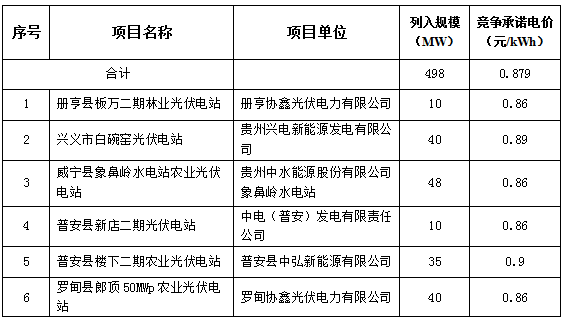 根據(jù)《國(guó)家能源局關(guān)于調(diào)整2016年光伏發(fā)電建設(shè)規(guī)模有關(guān)問(wèn)題的通知》(國(guó)能新能〔2016〕383號(hào))文件精神和《貴州省普通光伏電站項(xiàng)目競(jìng)爭(zhēng)性配置實(shí)施辦法(試行)》的要求,2016年貴州省普通光伏發(fā)電項(xiàng)目追加建設(shè)規(guī)模競(jìng)爭(zhēng)性配置工作,采取企業(yè)自主競(jìng)價(jià)等相關(guān)競(jìng)爭(zhēng)性要求申報(bào)項(xiàng)目、第三方機(jī)構(gòu)評(píng)選的方式進(jìn)行優(yōu)選,共有23個(gè)項(xiàng)目申報(bào)參與競(jìng)爭(zhēng)性評(píng)選,總裝機(jī)規(guī)模98萬(wàn)千瓦。經(jīng)過(guò)第三方機(jī)構(gòu)評(píng)選,共有15個(gè)項(xiàng)目獲得優(yōu)選配置規(guī)模,追加總規(guī)模為49.8萬(wàn)千瓦,經(jīng)國(guó)家能源局同意,現(xiàn)予公布。