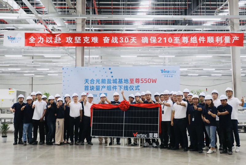 天合光能鹽城制造基地具備先進的儀器和工業(yè)設(shè)備、高度自動化和智能化的運營體系,加上以客戶價值為核心的理念和高水平的管理,這些條件成就了至尊超高功率550W組件多主柵、無損切割、高密度封裝等多項創(chuàng)新技術(shù)的完美實現(xiàn),且快速量產(chǎn)。