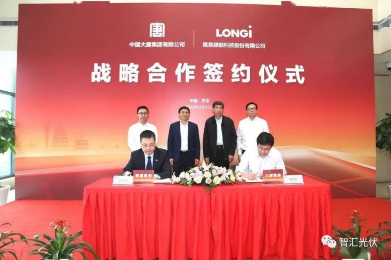 9月25日,中國(guó)大唐與隆基綠能科技股份有限公司在西安簽署戰(zhàn)略合作框架協(xié)議。中國(guó)大唐黨組書(shū)記、董事長(zhǎng)陳飛虎,隆基股份董事長(zhǎng)鐘寶申出席簽約儀式。