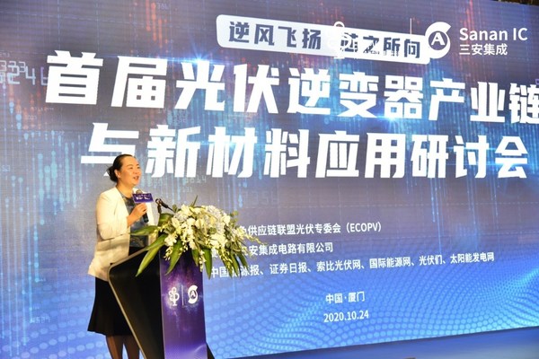 此次研討會(huì)由中國綠色供應(yīng)鏈聯(lián)盟光伏專委會(huì)主辦,廈門市三安集成電路有限公司承辦。出席本次研討會(huì)的嘉賓包括:工業(yè)和信息化部電子信息司副司長楊旭東,工業(yè)和信息化部電子信息司電子基礎(chǔ)處金磊,工業(yè)和信息化部國際經(jīng)濟(jì)技術(shù)合作中心主任、中國綠色供應(yīng)鏈聯(lián)盟副理事長兼秘書長鄭紅,中國綠色供應(yīng)鏈聯(lián)盟光伏專委會(huì)主任沈輝、秘書長呂芳,中國能源研究會(huì)常務(wù)理事李俊峰,工業(yè)和信息化部國際經(jīng)濟(jì)技術(shù)合作中心能源資源環(huán)境研究所所長毛濤等等行業(yè)專家、研究機(jī)構(gòu)、發(fā)電公司、光伏逆變器企業(yè)、媒體的近百位嘉賓蒞臨。原國務(wù)院參事、中國可再生能源學(xué)會(huì)第七、八屆理事長石定寰通過視頻的方式向本次研討會(huì)的召開送上賀詞,提出對(duì)光伏逆變器產(chǎn)業(yè)鏈的期許。