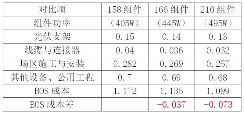 三款組件對(duì)應(yīng)的低壓側(cè)成本,隨功率提升有明顯的下降,550W組件與166的450W組件相比,降幅在0.1-0.17元/W之間;與182的540W組件相比,降幅在3-7分/W之間。