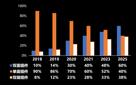此外,筆者認(rèn)為,玻璃企業(yè)也要積極擁抱市場(chǎng)競(jìng)爭(zhēng)。既有玻璃企業(yè)內(nèi)部的競(jìng)爭(zhēng),也有來(lái)自透明背板等相似產(chǎn)品的競(jìng)爭(zhēng)。根據(jù)相關(guān)專(zhuān)家統(tǒng)計(jì),2019年,雙面組件市場(chǎng)占有率約為14%,而雙玻組件市場(chǎng)占有率約為12%,也就是說(shuō),透明背板產(chǎn)品占據(jù)了2%的市場(chǎng)份額。預(yù)計(jì)2020年,透明背板的市場(chǎng)份額將達(dá)到7%,到2025年可能達(dá)到22%。如果玻璃企業(yè)滿足于目前的高額利潤(rùn),很可能迫使下游選擇其他技術(shù)路線。只有充分的市場(chǎng)競(jìng)爭(zhēng),才能讓企業(yè)充滿活力,不斷創(chuàng)新,為實(shí)現(xiàn)2030年碳排放達(dá)峰、2060年碳中和的宏偉目標(biāo)持續(xù)奮斗。