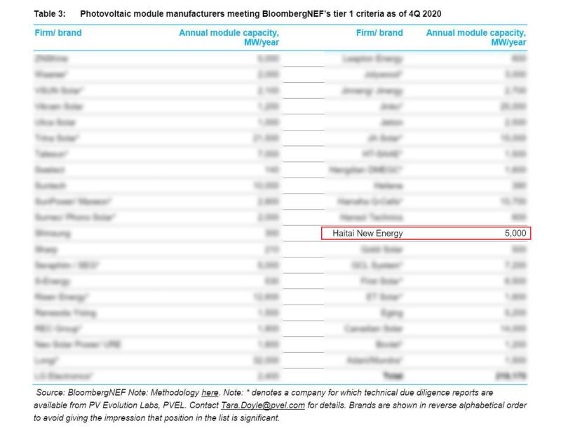 該評級體系分為三個(gè)等級,其中第一梯隊(duì)制造商的評判標(biāo)準(zhǔn)最為嚴(yán)格,企業(yè)須證明其能為六個(gè)不同項(xiàng)目提供自主品牌、自行生產(chǎn)的組件產(chǎn)品,且這些項(xiàng)目須獲得六家不同商業(yè)銀行的無追索權(quán)融資。由于Tier 1供應(yīng)商評選資格嚴(yán)苛,常被作為公平客觀且極具可信度的參考資料運(yùn)用于行業(yè)生產(chǎn)預(yù)測、主要競爭對手分析等行業(yè)分析中。