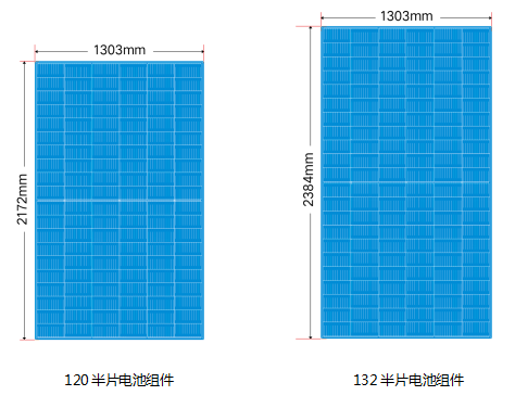 2. 半片電池組件標(biāo)準(zhǔn)尺寸: