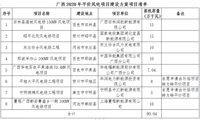 一、列入2020年平價風(fēng)電項目建設(shè)方案項目共8個,裝機(jī)容量約80萬千瓦;列入2020年第一批平價光伏項目建設(shè)方案項目共3個,裝機(jī)容量26萬千瓦。具體項目詳見附件。