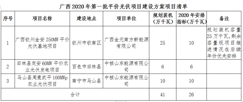 根據(jù)《國家能源局關(guān)于2020年風(fēng)電、光伏發(fā)電項目建設(shè)有關(guān)事項的通知》(國能發(fā)新能〔2020〕17號)要求,我局根據(jù)競爭性配置評分結(jié)果及廣西電網(wǎng)有限責(zé)任公司消納意見,統(tǒng)籌制定了2020年平價風(fēng)電和第一批平價光伏項目建設(shè)方案,現(xiàn)印發(fā)給你們,并就有關(guān)事項通知如下: