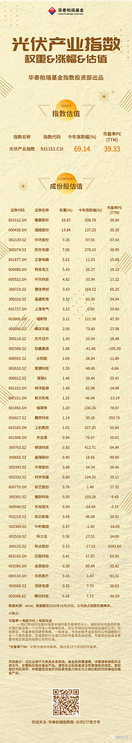 華泰柏瑞指數(shù)投資部總監(jiān)柳軍表示,雖然光伏行業(yè)處于景氣向上的高增長階段,成長空間大,但由于技術變化快,其競爭格局尚未穩(wěn)固,過去10年行業(yè)龍頭企業(yè)不斷更迭,個股投資風險較大。對于多數(shù)投資者來說,指數(shù)投資是持續(xù)鎖定優(yōu)勢個股、分享行業(yè)發(fā)展整體紅利的不錯選擇。
