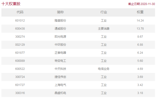 圖:中證光伏產業(yè)指數(shù)十大權重股