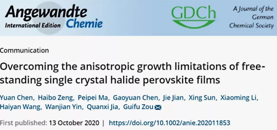 并且,通過在前驅(qū)體中引入表面活性劑鈍化表面,使表面能降低,反應(yīng)活化能增大的策略,調(diào)控不同晶面之間的相對生長速率,從而誘導(dǎo)各向異性生長。采用這種策略,作者合成了厚度小于100納米,尺寸接近厘米級的CsPbBr3鈣鈦礦單晶薄膜,并且薄膜顯示出優(yōu)異的光學(xué)、電學(xué)性能、以及良好的柔性特質(zhì)。