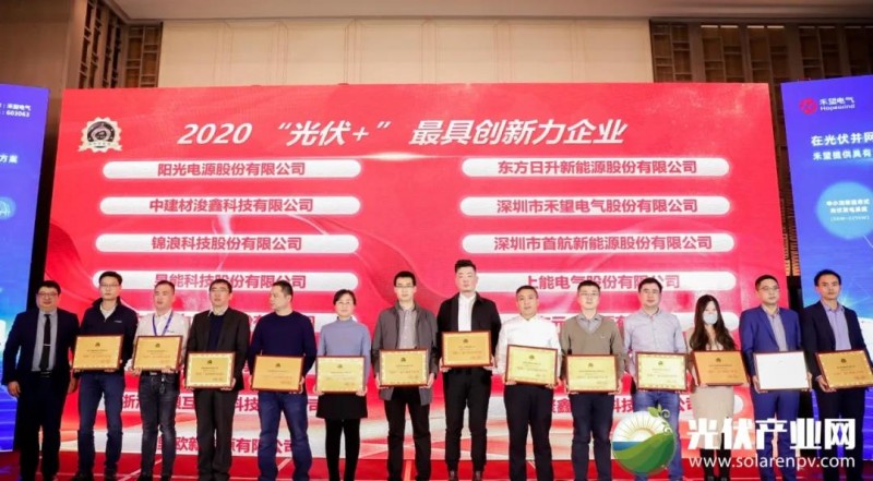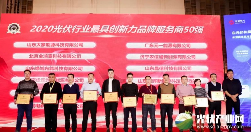 元一能源受邀出席本次大會。在「PVTOP50」2020光伏創(chuàng)新榜頒獎典禮上,元一能源榮獲“2020光伏行業(yè)最具創(chuàng)新力品牌服務(wù)商50強(qiáng)”、“2020‘光伏+’最具創(chuàng)新力企業(yè)”兩項(xiàng)重磅大獎。