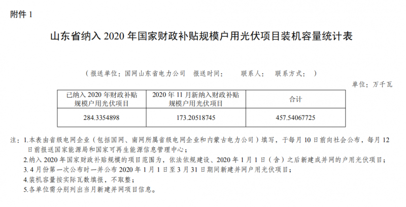 附件1:山東省納入2020年國家財政補貼規(guī)模戶用光伏項目裝機容量統(tǒng)計表(11月).pdf