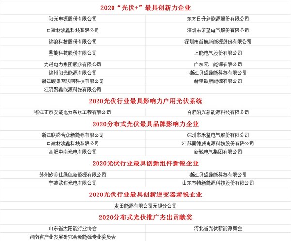 12月4日,“「PV TOP 50」2020光伏創(chuàng)新榜”頒獎典禮,在山東濟南圓滿落下帷幕!