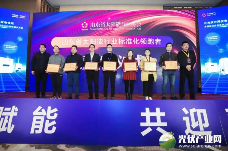 演講完畢,山東省太陽(yáng)能行業(yè)協(xié)會(huì)舉行了“太陽(yáng)能標(biāo)準(zhǔn)領(lǐng)跑者”的頒獎(jiǎng)儀式。