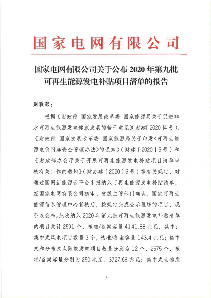 根據(jù)《財政部國家發(fā)展改革委國家能源局關(guān)于促進非水可再生能源發(fā)電健康發(fā)展的若干意見》(財建〔2020〕4號)、《財政部國家發(fā)展改革委國家能源局關(guān)于印發(fā)<可再生能源電價附加資金管理辦法>的通知》(財建〔2020〕5號)和《財政部辦公廳關(guān)于開展可再生能源發(fā)電補貼項目清單審核有關(guān)工作的通知》(財辦建〔2020〕6號)規(guī)定,國家電網(wǎng)有限公司積極配合各省級能源主管部門和國家可再生能源信息管理中心,為符合中央財政補助條件的可再生能源發(fā)電項目提供補貼清單申報服務。