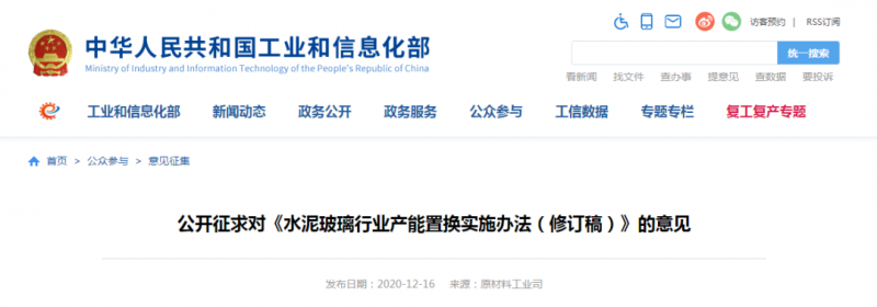 為進一步聽取社會各界意見,現(xiàn)予以公示,公示日期截止2021年1月19日。如有意見或建議,請在公示期間填寫《公示意見反饋信息表》(見附件2)并反饋至工業(yè)和信息化部原材料工業(yè)司,電子郵件發(fā)送至yclsjcc@miit.gov.cn(郵件主題注明:水泥玻璃行業(yè)產(chǎn)能置換實施辦法公示意見反饋)。