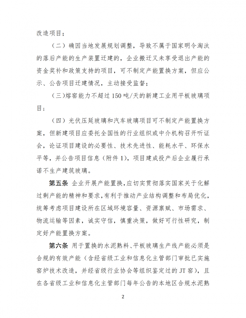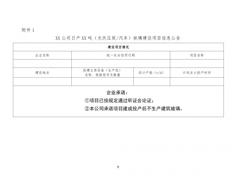 光伏壓延玻璃和汽車玻璃項目可不制定產(chǎn)能置換方案,但新建項目應委托全國性的行業(yè)組織或中介機構召開聽證會,論證項目建設的必要性、技術先進性、能耗水平、環(huán)保水平等,并公告項目信息(附件1),項目建成投產(chǎn)后企業(yè)履行承諾不生產(chǎn)建筑玻璃。