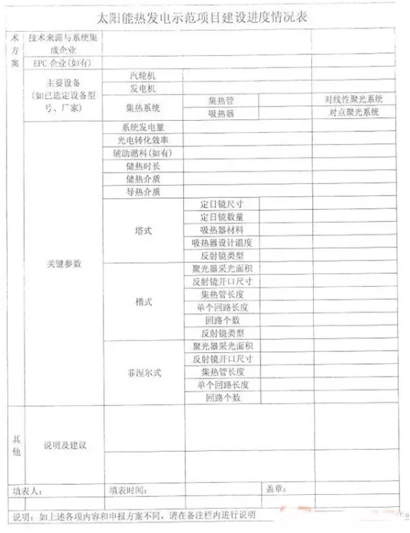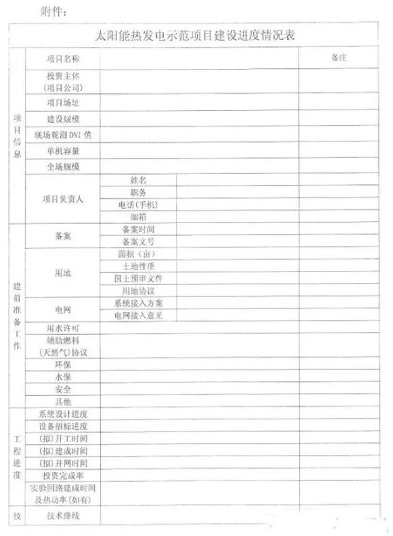近日,國家能源局發(fā)布《關(guān)于報(bào)送太陽能熱發(fā)電示范項(xiàng)目建設(shè)進(jìn)展情況的通知》(以下簡(jiǎn)稱“通知”)。為了解示范項(xiàng)目建設(shè)情況,各省區(qū)能源主管部門須上報(bào)本地項(xiàng)目進(jìn)展情況。