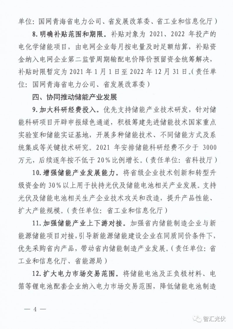 5)明確補(bǔ)貼范圍和期限 。補(bǔ)貼對象為2021、2022 年投產(chǎn)的電化學(xué)儲(chǔ)能項(xiàng)目 ,由電網(wǎng)企業(yè)每月按電量及時(shí)足額結(jié)算,補(bǔ)貼資金納入電網(wǎng)企業(yè)第二監(jiān)管周期輸配 電價(jià)降價(jià)預(yù)留資金統(tǒng)籌解決,補(bǔ)貼時(shí)限暫定為2021年 1 月 1 日至 2022 年 12 月3 1 日。
