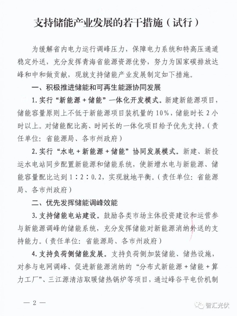 1)將實(shí)行“新能源+儲(chǔ)能”一體化開發(fā)模式。新建新能源項(xiàng)目,儲(chǔ)能容量原則上不低于新能源項(xiàng)目裝機(jī)量的10%,儲(chǔ)能時(shí)長2小 時(shí)以上。對儲(chǔ)能配比高、時(shí)間長的一體化項(xiàng)目給予優(yōu)先支持。